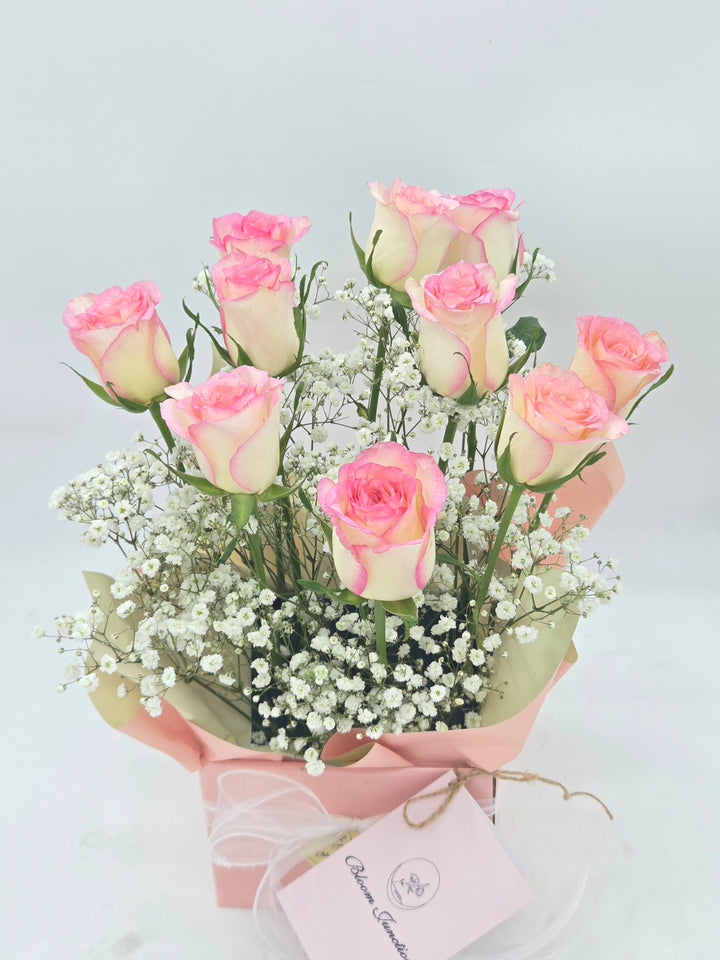 "Add a touch of elegance and romance to any space with these beautiful Pink Roses in a vase. Perfect for any occasion and sure to put a smile on your loved one's face. Bring the beauty of nature indoors with these stunning flowers." Transform your home into a peaceful and loving oasis with our Pink Roses in vase. These delicate flowers add a touch of beauty and joy to any room, creating a warm and welcoming atmosphere for you and your loved ones to enjoy. Whether it's a special occasion or just a simple gesture of love, our Pink Roses are the perfect choice for showing your affection. Brighten up your space and put a smile on your loved one's face with these lovely flowers.
