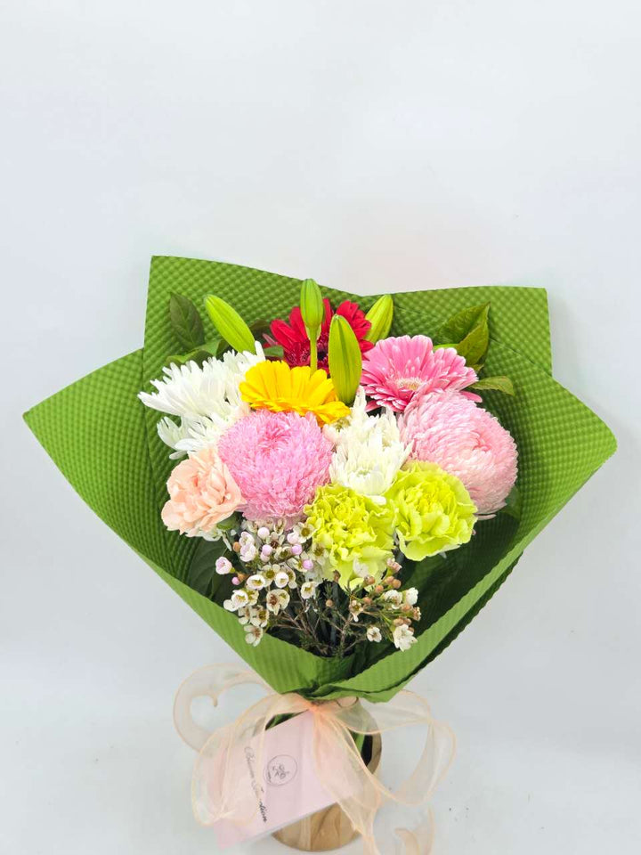 Brighten up anyone's day with our Surprise Little Flowers! These mini bouquets feature a beautiful color palette of white, pink, and orange, making them the perfect gift for any occasion. Handcrafted to perfection, these blooms will surely bring a smile to anyone's face. Order now and spread some joy!